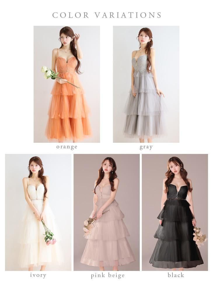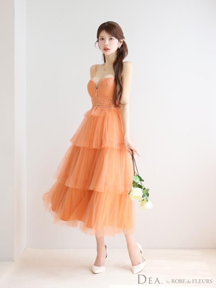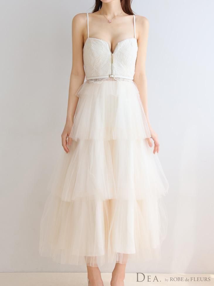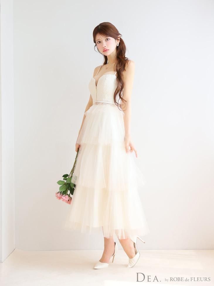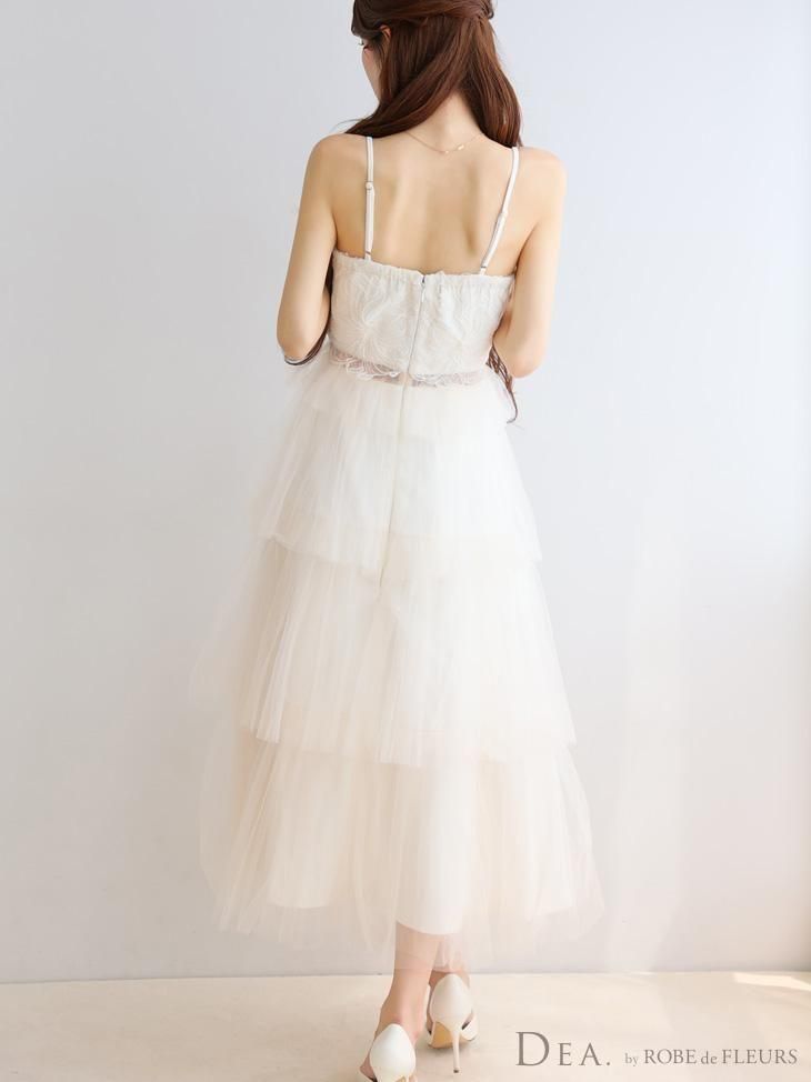 シフォンオーガンジーを重ねたかわいらしいロングドレス。