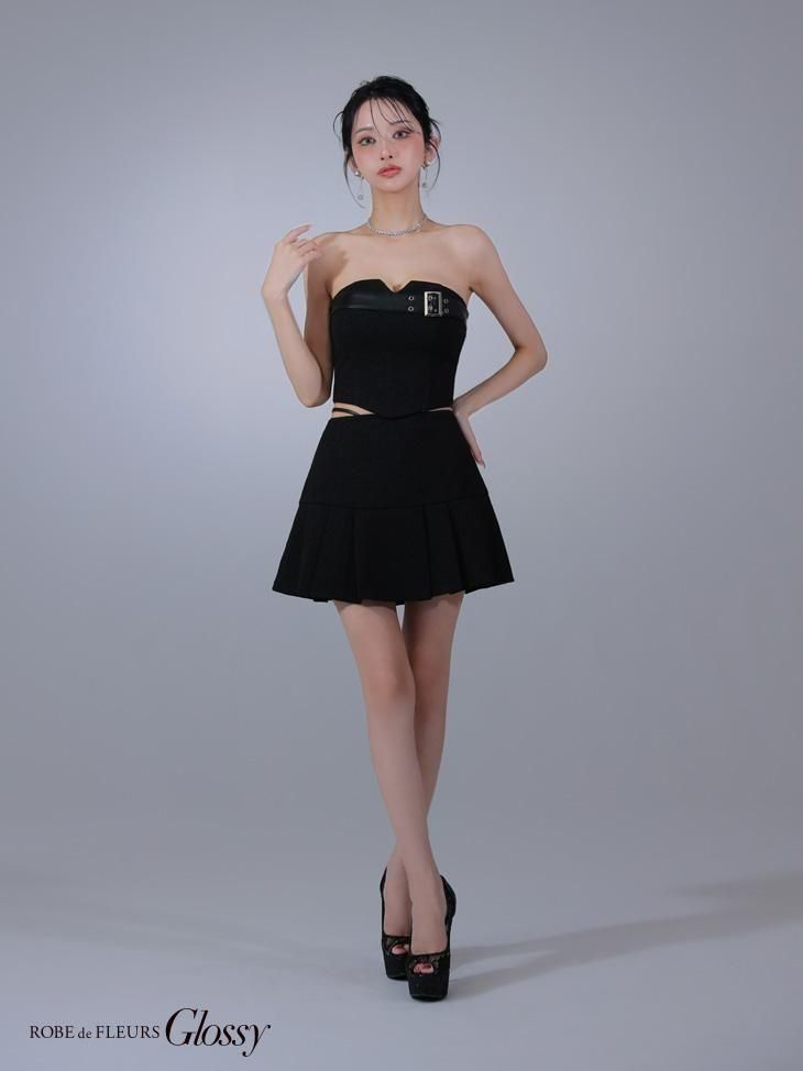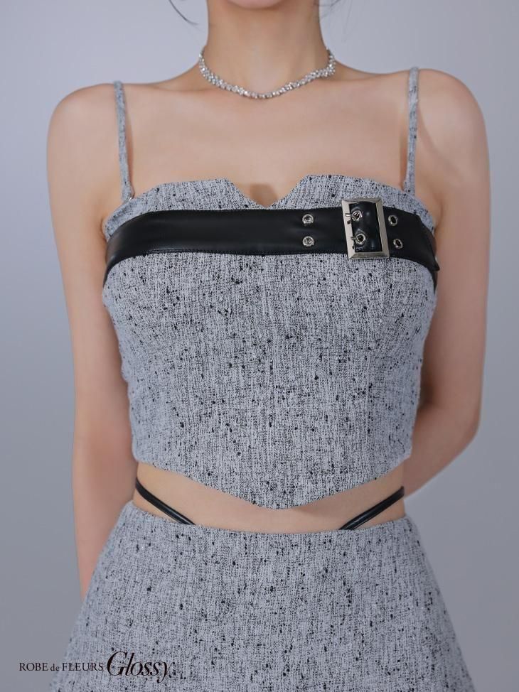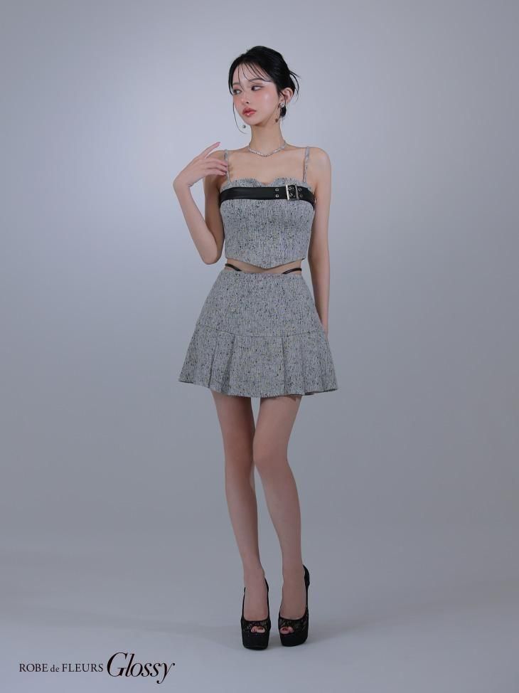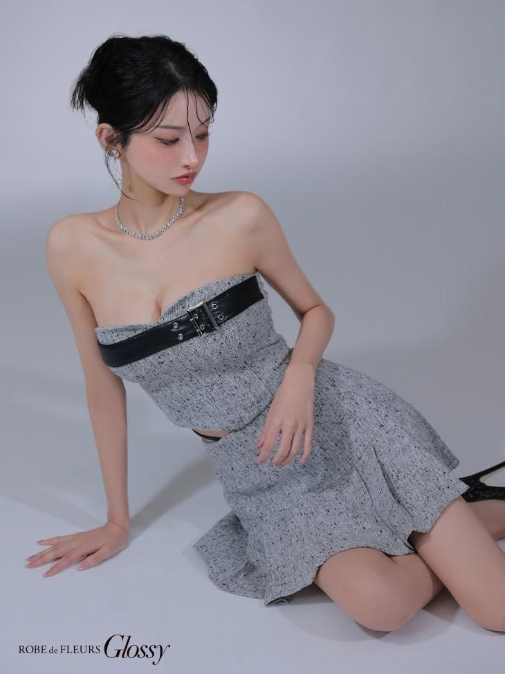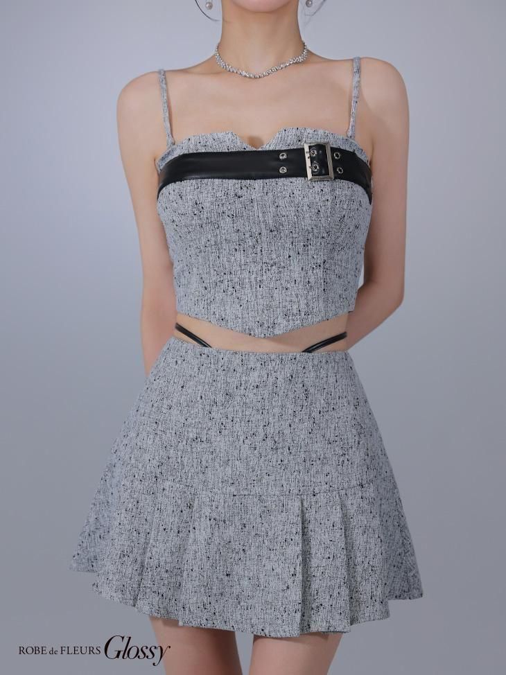 ツイード生地と合皮の組み合わせがかわいいセットアップドレス。