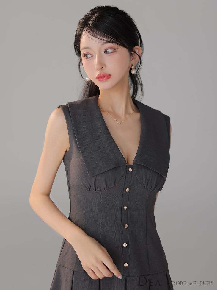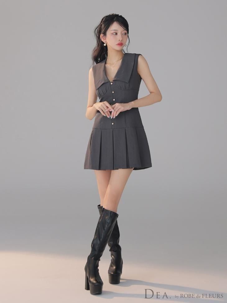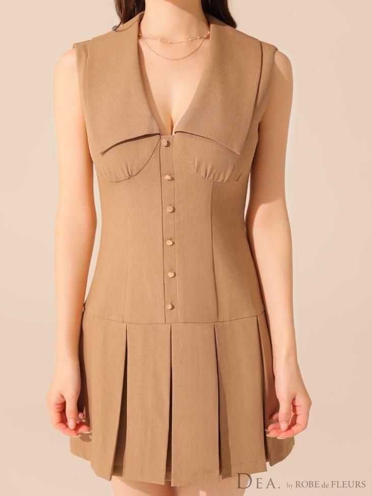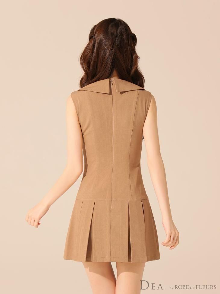 ウエスト切替とプリーツスカートで、メリハリのある女性らしいシルエットに