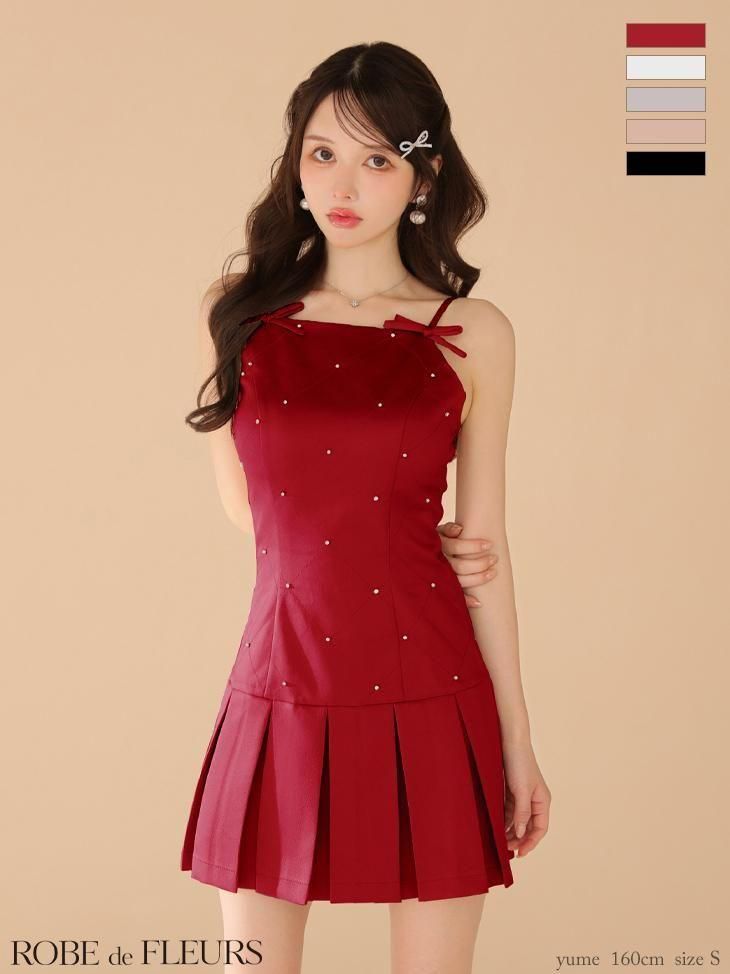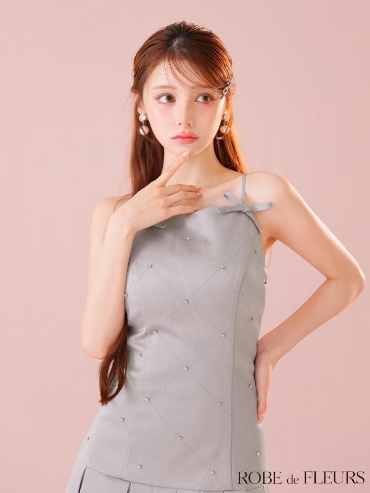 艶感のあるサテン生地に、ビジューをちりばめた華やかな一着。