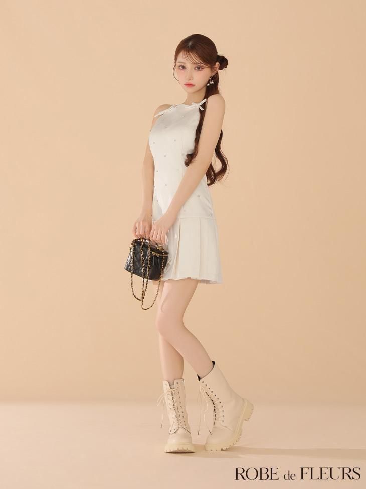 裾のボックスプリーツが上品さとガーリーさを両立。