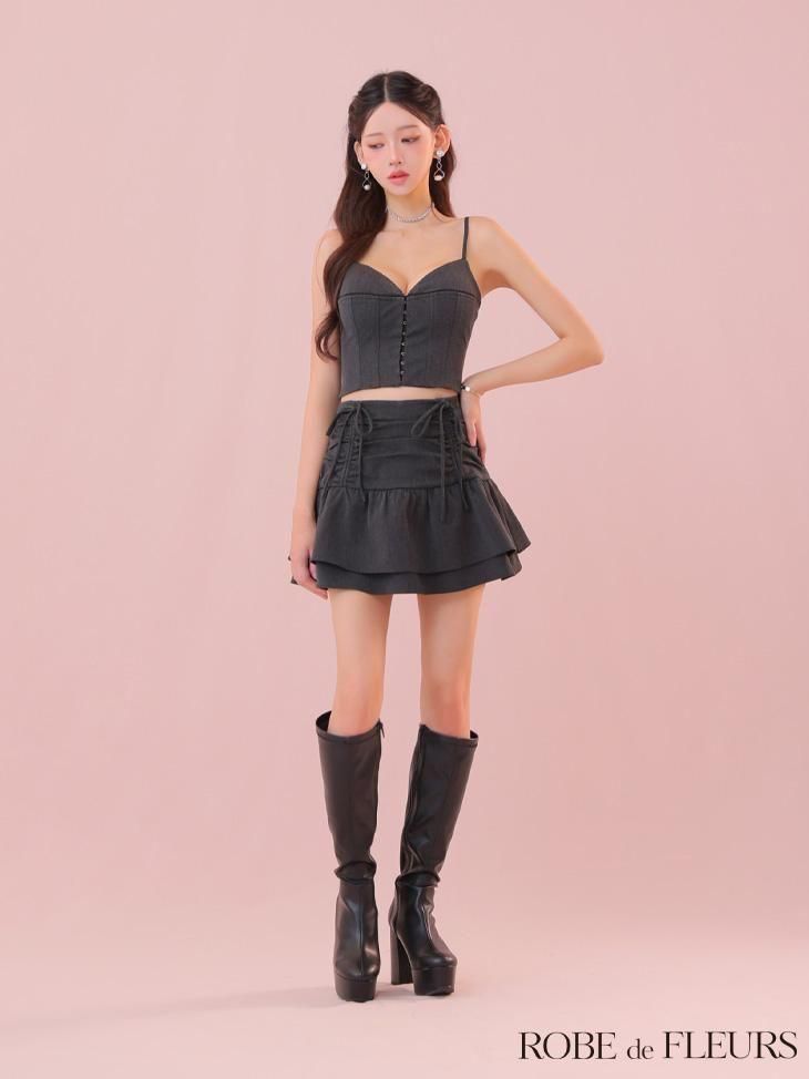 Mサイズ | バスト約74〜84cm ウエスト約61〜67cm ヒップFREE 着丈(トップス)脇下約22cm(スカート)約36cm |