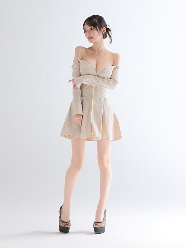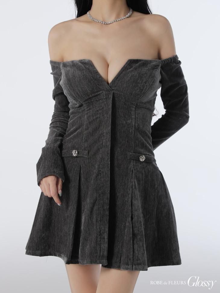 バストカットとオフショルのデザインがセクシーなミニワンピ。