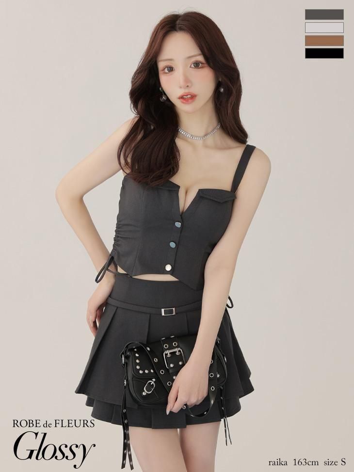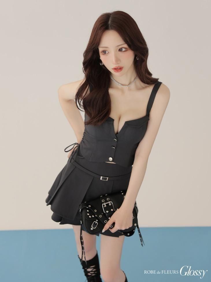 深めのVラインとフロントボタンが大人っぽさを演出♡