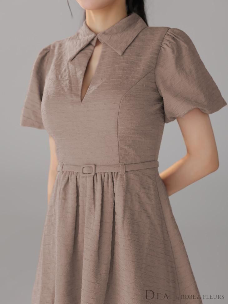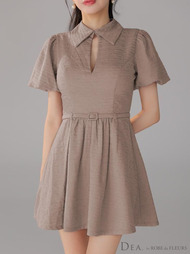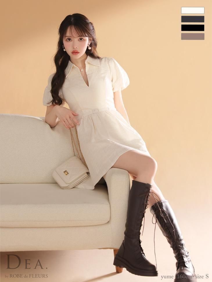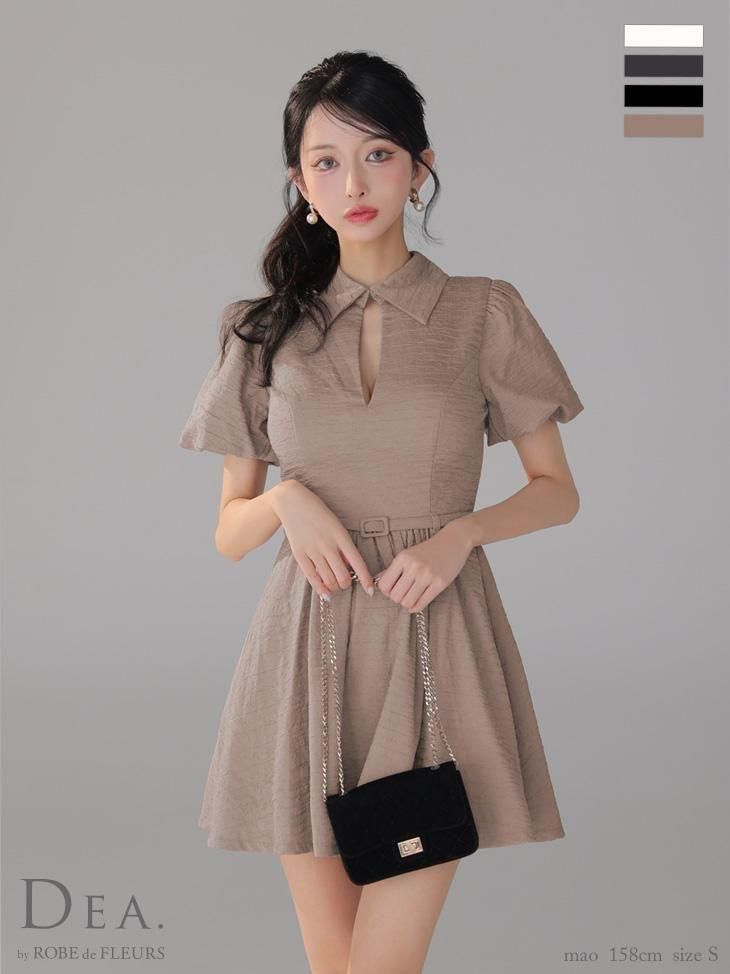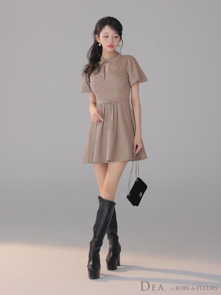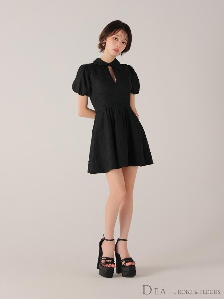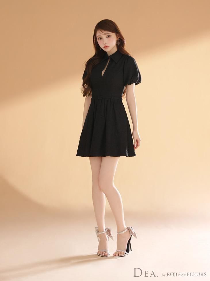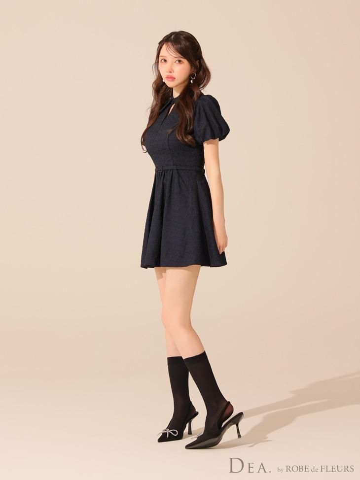 シンプルな中にディテールの美しさが光る、上品なミニ丈ドレス。