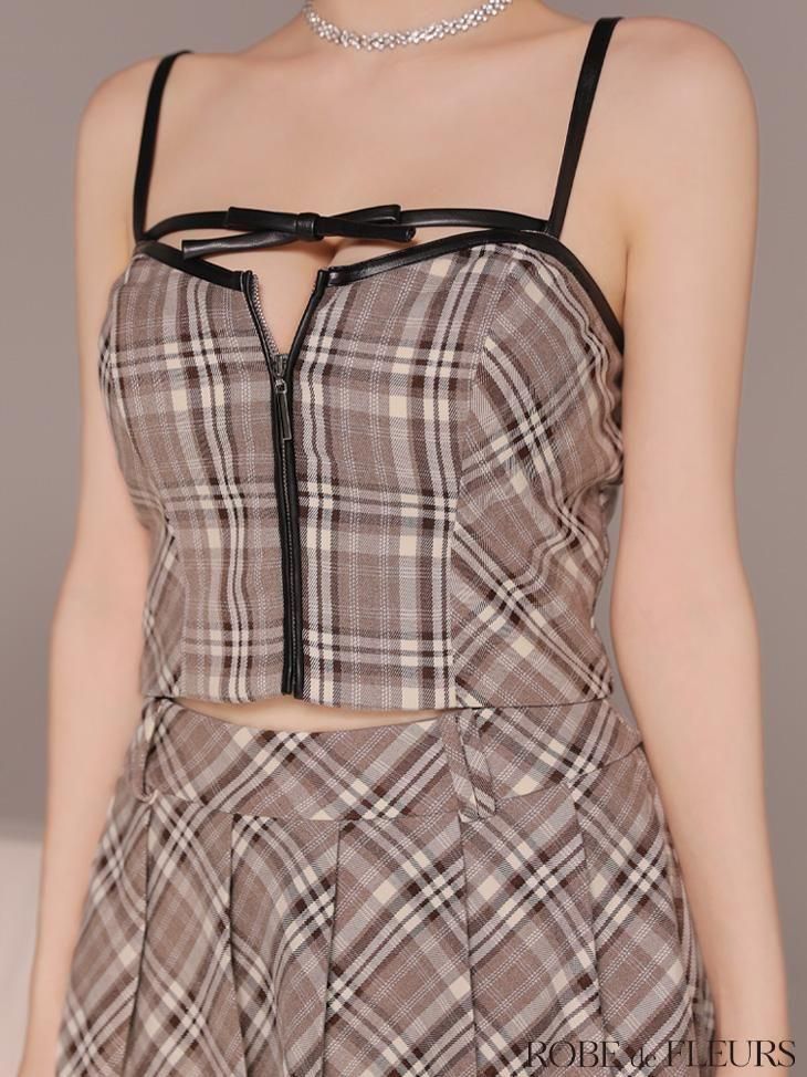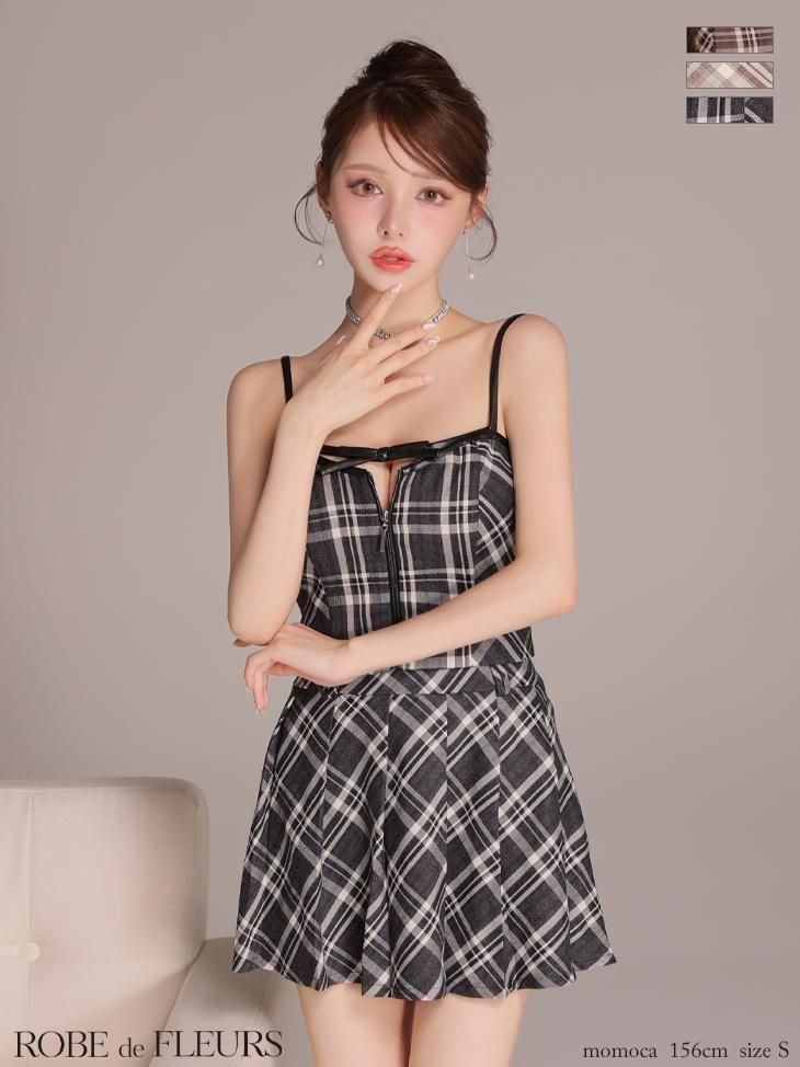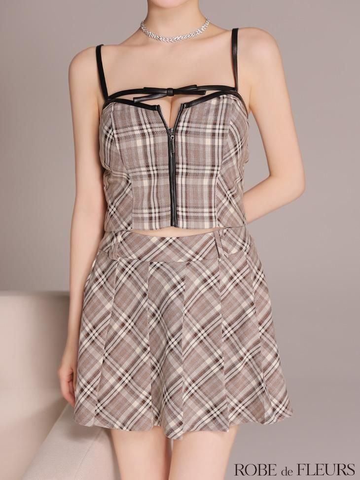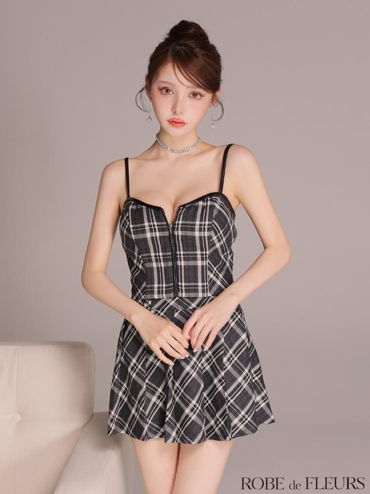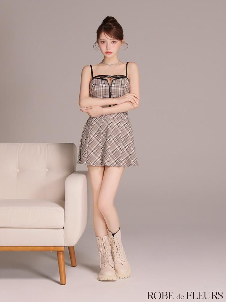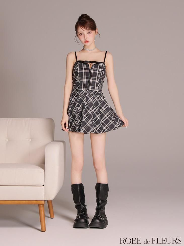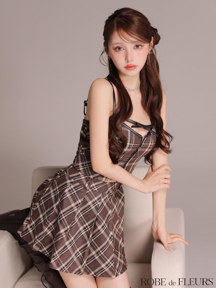 チェック柄×レザー使いでガーリーさと大人っぽさを兼ね備えたツーピース。