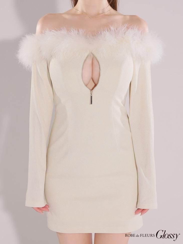 取り外し可能のファーがついたミニワンピ。