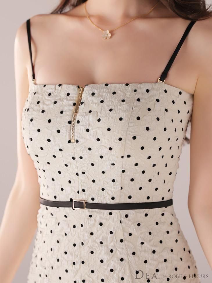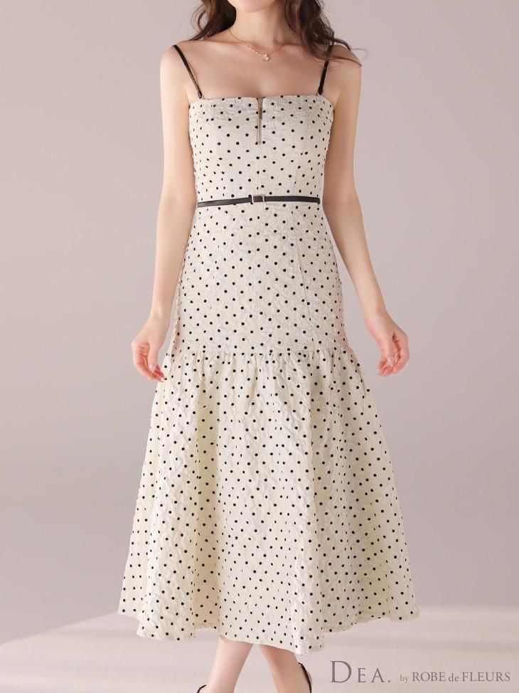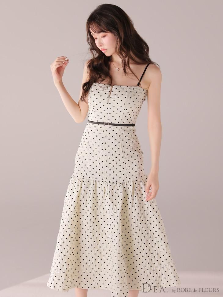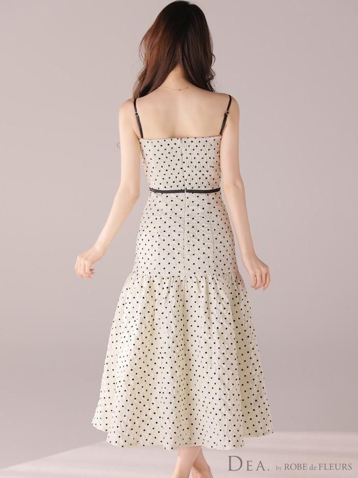 フロッキードット柄ジャガードが印象的なマーメイドラインワンピース。