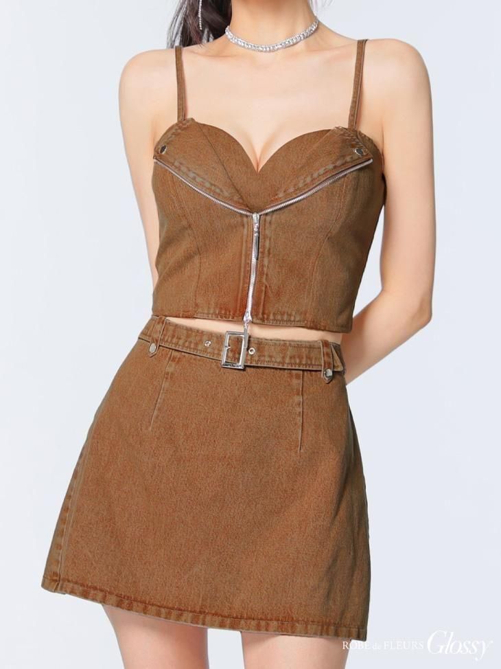 ジップデザイン×デニムがスタイリッシュなセットアップミニ。