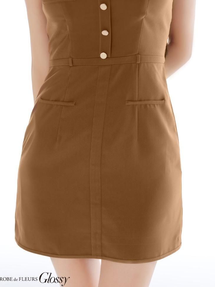 フロントボタンがアクセントになり、タイトなシルエットがスタイルを美しく引き立てます。