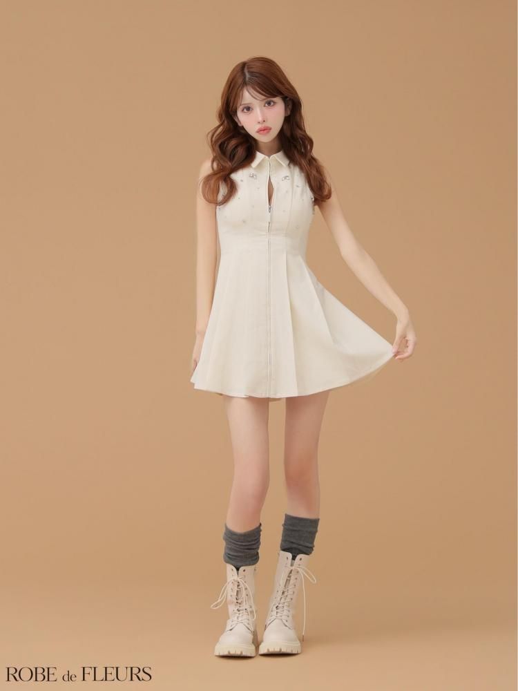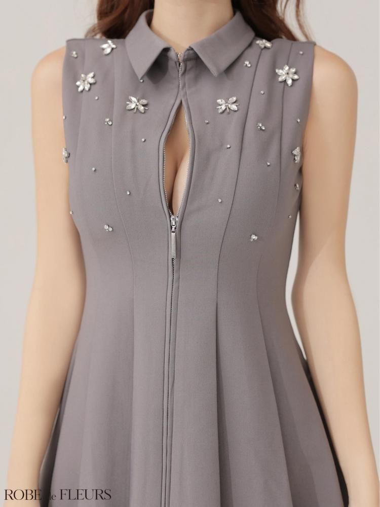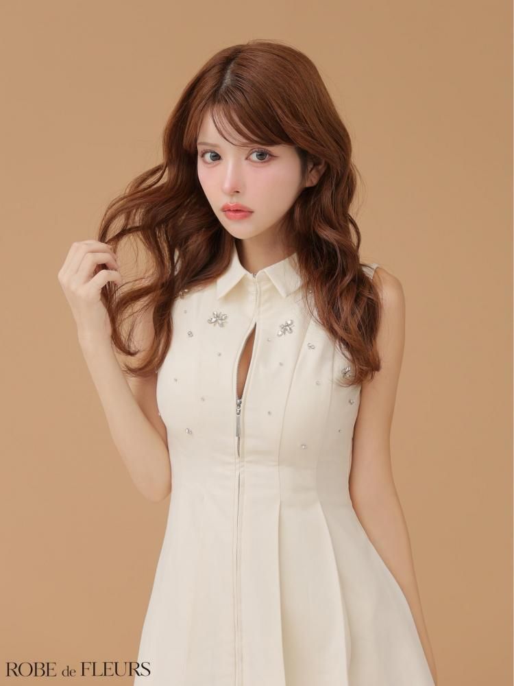 クラシカルな襟付きデザインが上品で知的な印象を与える、ノースリーブミニドレス。